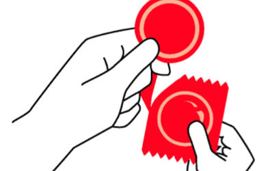 • Pon el condón en la punta del pene erecto. Si no estás circuncidado, retira primero el prepucio hacia atrás.